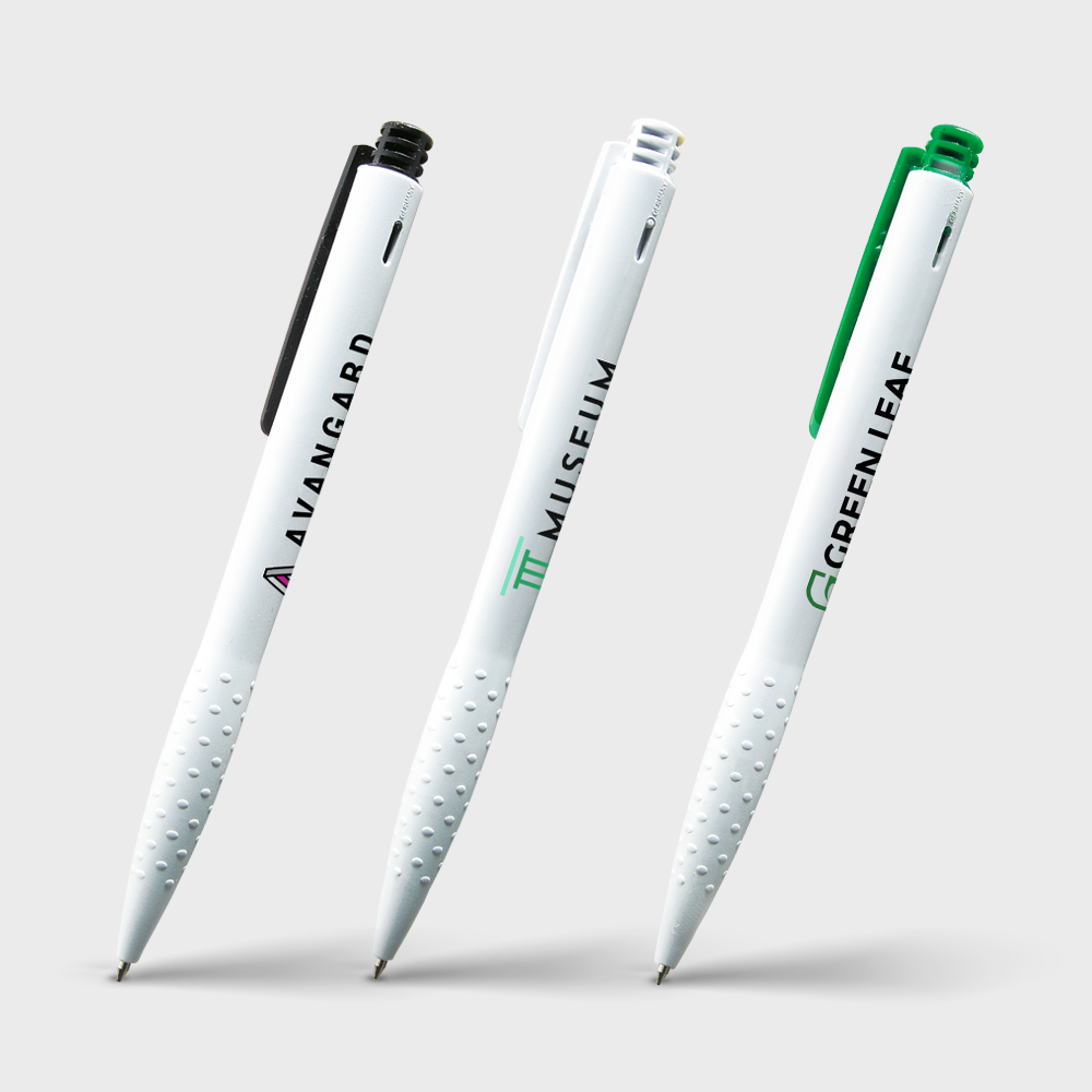A neat and classic writing tool. Features smooth ballpoint ink with a comfy textured grip. Includes coloured clip and push button for added style. Perfect for daily note-taking or doodling.